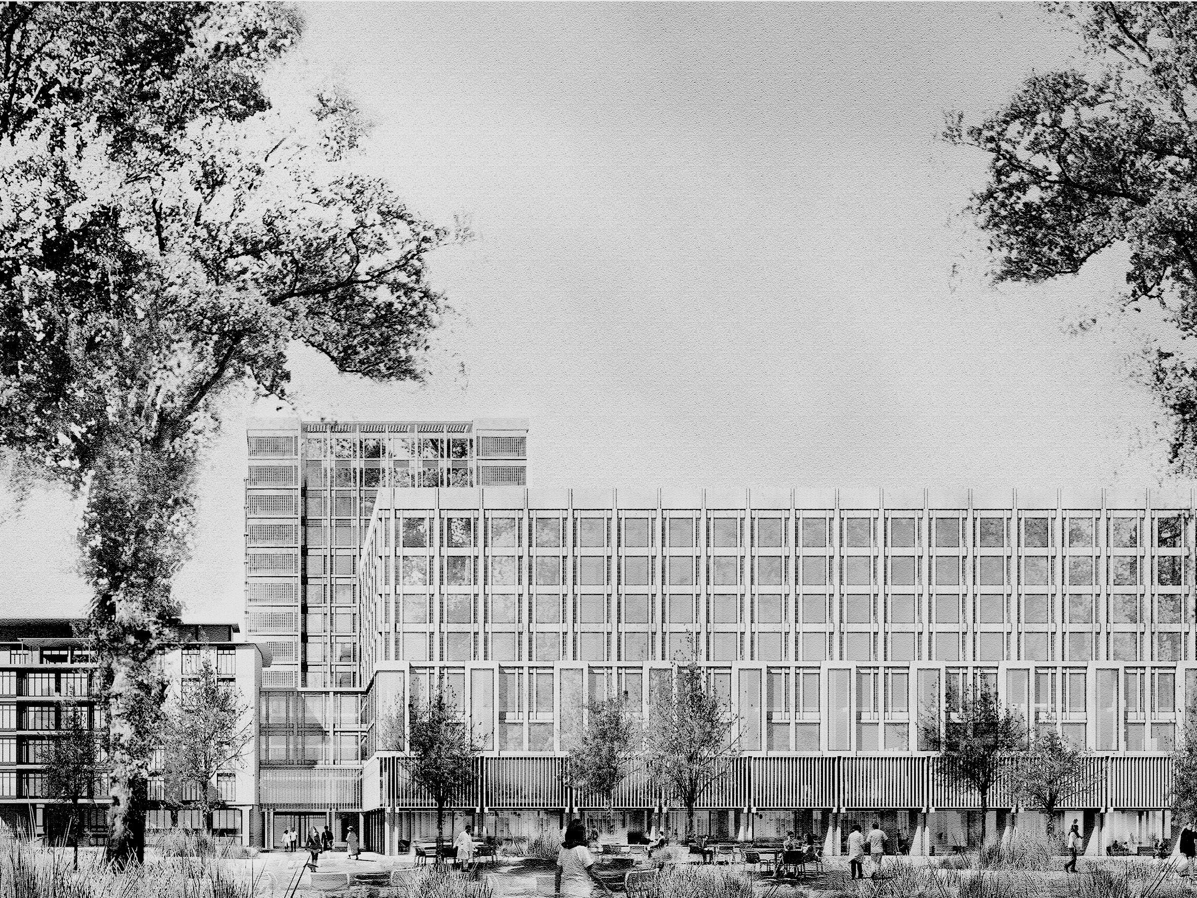 In der Gesamtschau des Hochschulquartiers treten die institutionellen Hauptbauten aus dem Stadtbild heraus. Ihre grossen Volumetrien lagern parallel zur Hangkante und entwickeln zusammen mit einem jeweiligen vertikalen Pendant eine Gleichgewichtsfigur, was ihre Prägung als Ensemble aus der Fernsicht bewirkt. Auch aus der Nahsicht zeigt sich die Verwandtschaft der Architekturen. Den vertikalen Gebäudeteilen kommt die Gliederung und Akzentuierung der langen Gebäudekomplexe zu. Die Vertikale setzt die Horizontale in eine gleichgewichtige Spannung. Beim Neubau des USZ Etappe 1 wird diese Spannung durch zwei liegende Gebäudeteile aufgebaut, die den vertikalen Kernbau in einer offenen Klammer umschliessen und sich je auf ihre beiden Stadtseiten hin repräsentieren.