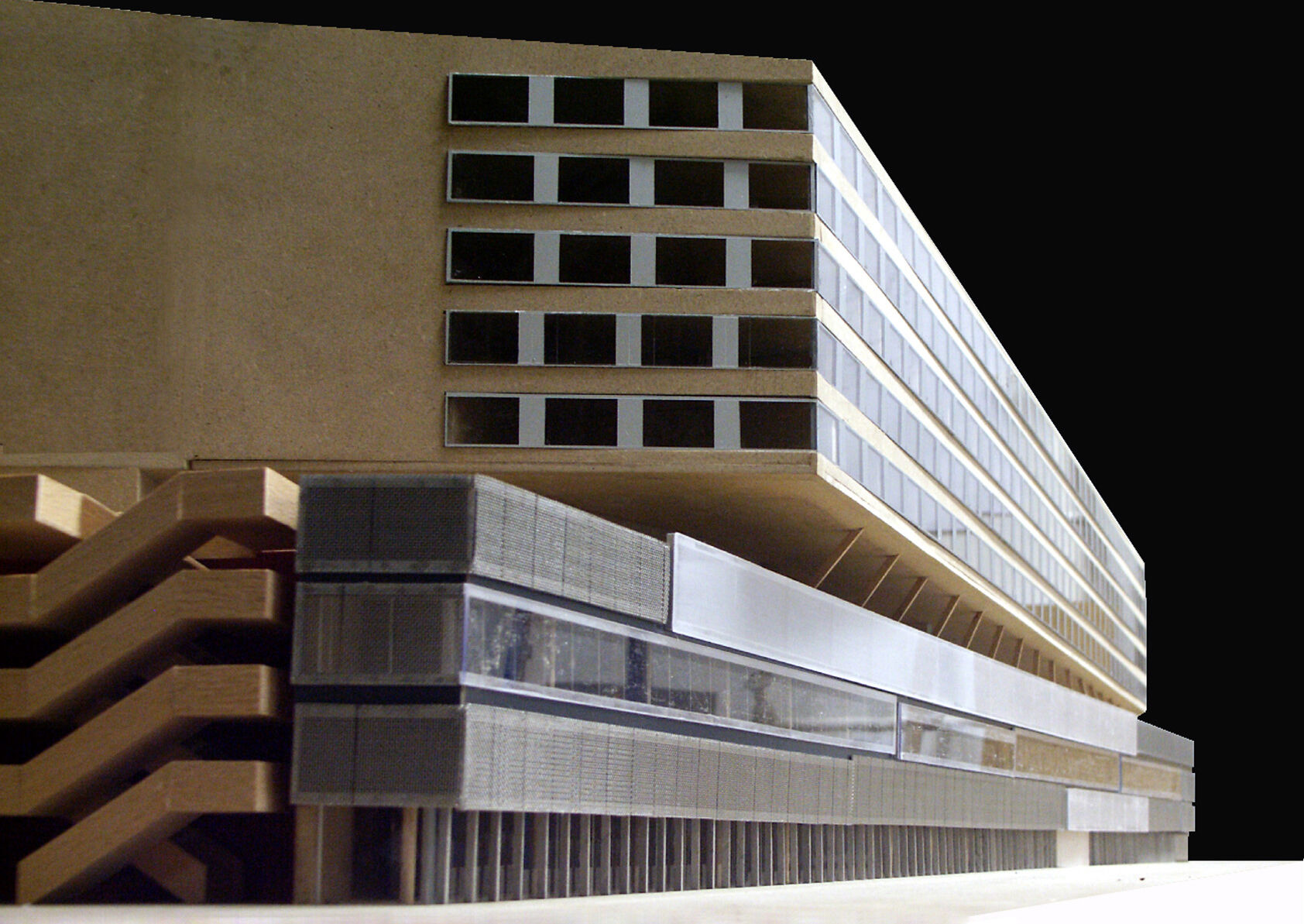 Im Stadion Zürich war dies der Hintergrund für den wichtigsten architektonischen Entscheid: die zwei übereinanderliegenden und gegeneinander leicht ausgedrehten Fünfecke, welche die Figur des gesamten Komplexes prägen. Die deutlich verzogene Geometrie des Sockels ist der Ausnützungsoptimierung auf einem sehr beengten Grundstück geschuldet. Gleichzeitig definiert die Sockelform alle städtischen Räume in unmittelbarer Nähe mit fast morphologischer Aufmerksamkeit. Die vertikale Entflechtung der Funktionen bewirkt, dass das Stadiongerippe in den Obergeschossen gegen aussen in seiner blossen Form in Erscheinung tritt. Diese beabsichtigte Nacktheit des Tribünenkörpers erinnert an die grossen Stadien, in welchen sich die formale Geste als direktes Zeichen ihres Inhalts exponiert. Die Form mit ihren riesigen Auskragungen nähert sich einem idealen Pentagon an. Dank der fünfeckigen Schale gibt es weniger schlechte Sichtdistanzen in den Eckzonen des Zuschauerbereichs. Die schrägen Schnittflächen erzeugen privilegierte, innere Fassaden, die den Logen, der Bar und den Medien vorbehalten sind. Diese «bewohnten Wände» erinnern zudem an Opernhäuser. Die Hotelfassade zum Spielfeld dreht die Verhältnisse zwischen innen und aussen um. Wie in einem italienischen Theater ist das Gesicht der Stadt im Zuschauerraum als Seitenwand präsent.